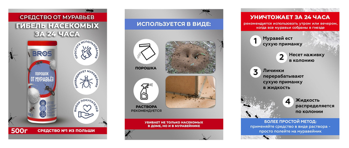Здесь нам понравилось, что первый слайд не перегружен ни текстом, ни цветом, добавлена информация о назначении, объеме и важное преимущество товара. Второй и третий слайд информируют покупателя о способе применения средства и технологии его действия.