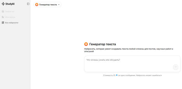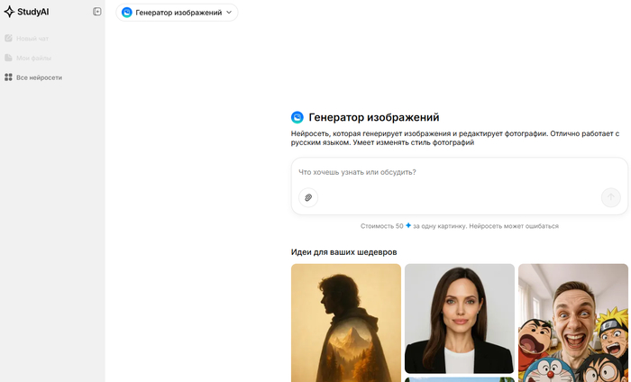 StudyAI — Агрегатор нейросетей, предоставляющий доступ к инструментам для генерации текстов, изображений, видео и решения различных задач, с фокусом на удобство для учебы и работы.