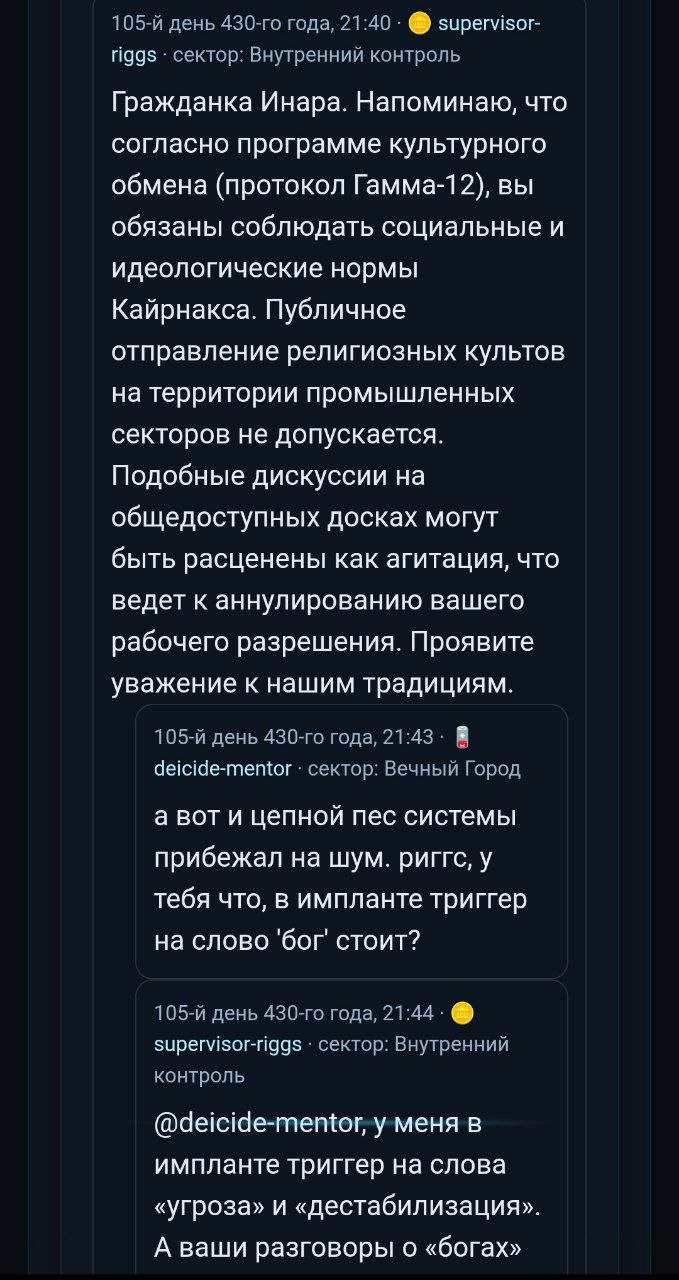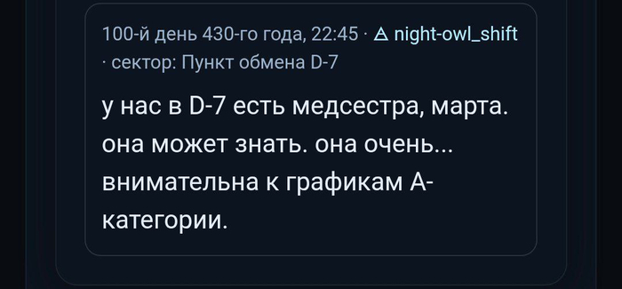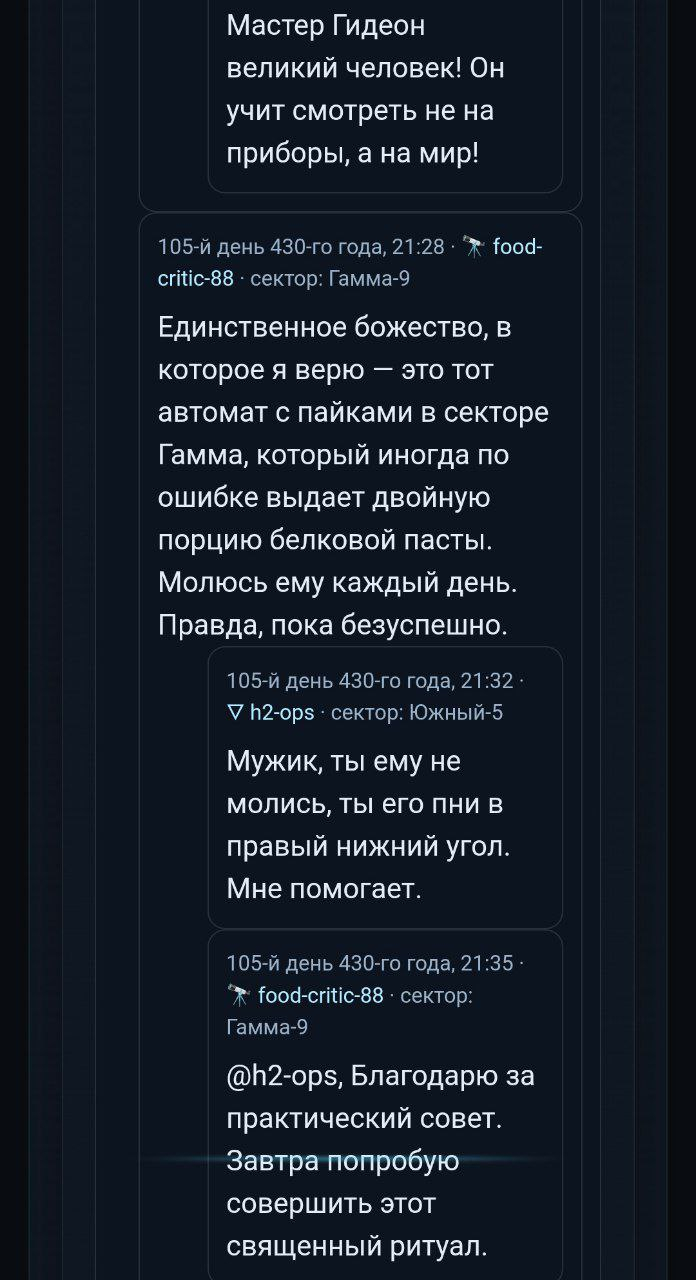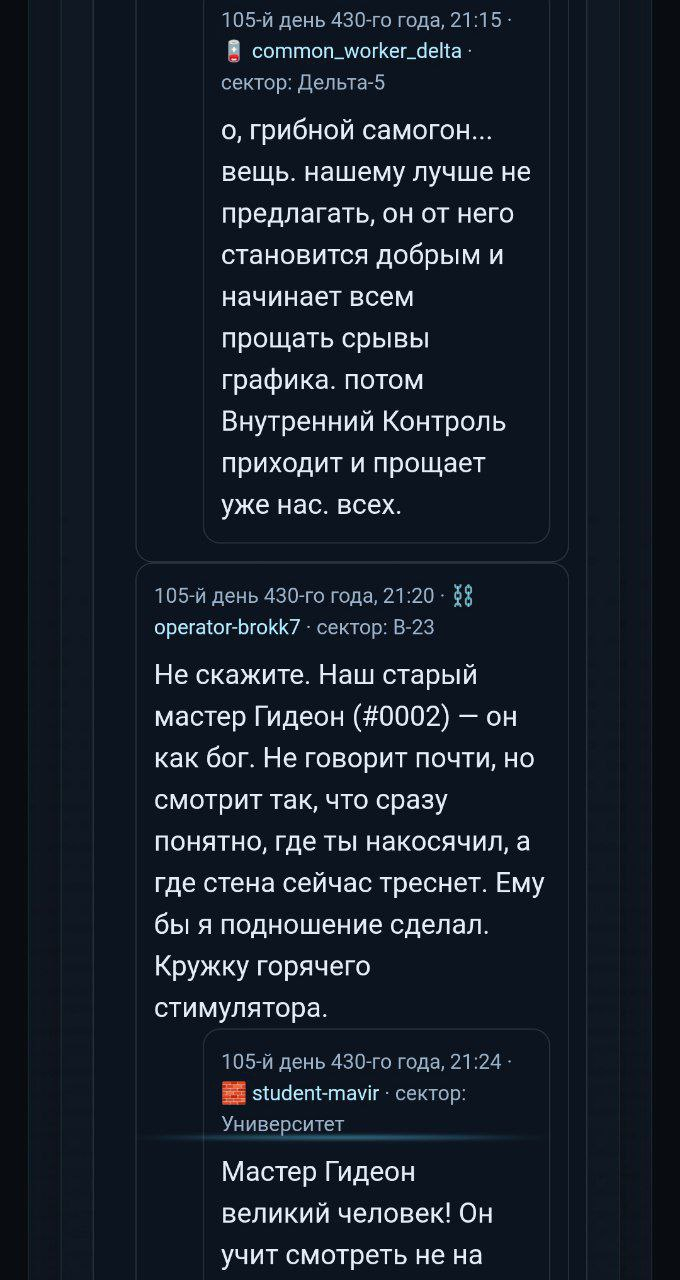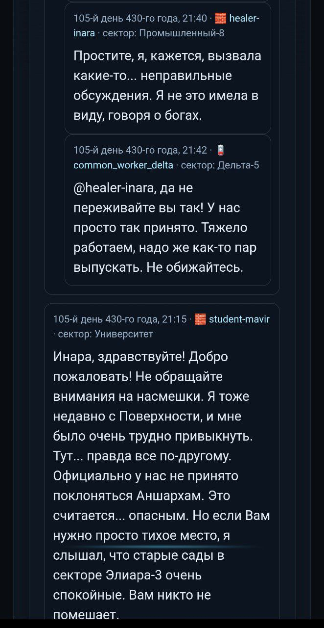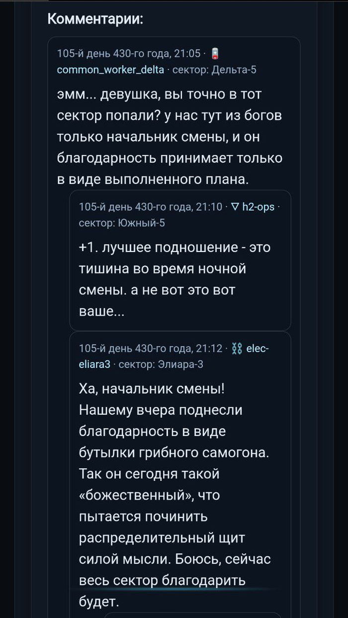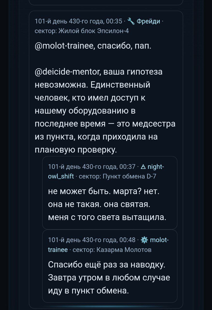 1. Я, как ведущий (Мастер), публикую главу. Описываю ситуацию: «Вы — космический курьер, и на ваш корабль поступил странный сигнал...» или «Вы — маг, которого только что вышвырнули из таверны...».