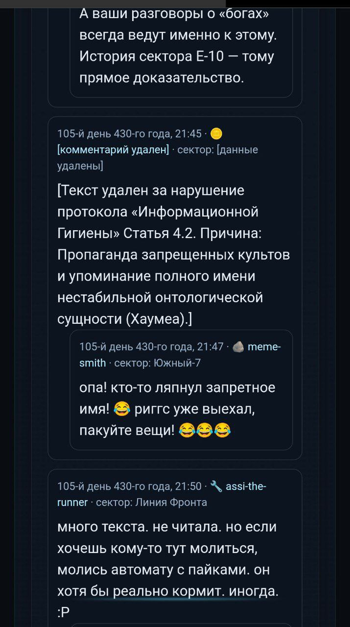 · Место для творчества и юмора. Предлагайте свои идеи, пишите диалоги за героя — здесь всё ограничено только фантазией участников.