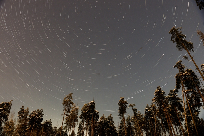 Снимая в ночном лесу проваливаясь в сугробы между елок и елей, меня не покидало чувство , что за мною кто-то наблюдает ... жутковастенько ...