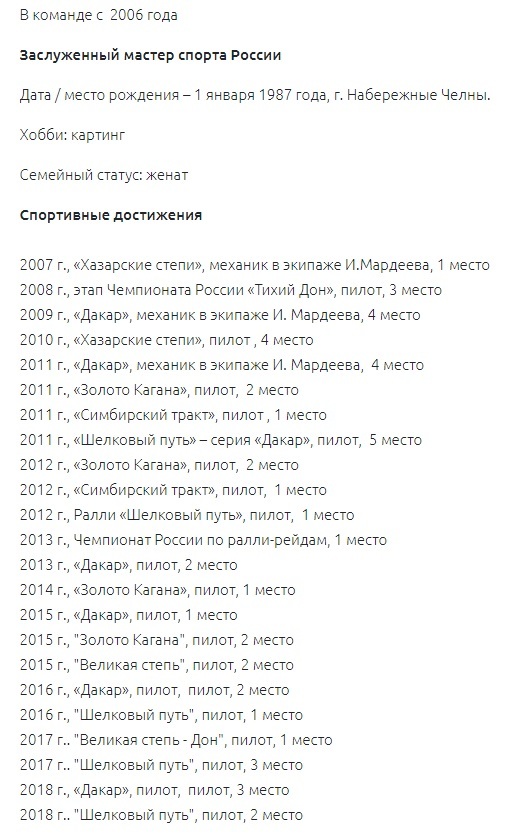 «Это нормальная ротация в нашей команде, — отвечает на вопрос Мардеев. — У нас пять пилотов, а на Дакар всегда выезжает четыре машины. В этом году эта участь выпала на меня. Впервые я провожу его вне кабины боевого КАМАЗа. Мы стараемся следить, чтобы в команде накат у всех пилотов был примерно одинаковый и это одна из причин, по которой я пропускаю этот год. Этот Дакар для меня одиннадцатый, а Антон [Антон Шибалов победил на первом этапе гонки Дакар 2020 — прим. редактора] не так много Дакаров проехал. Плюс к этому: у него очень хороший сезон, он реально на хорошем подъёме, думаю, у него будет хороший результат».