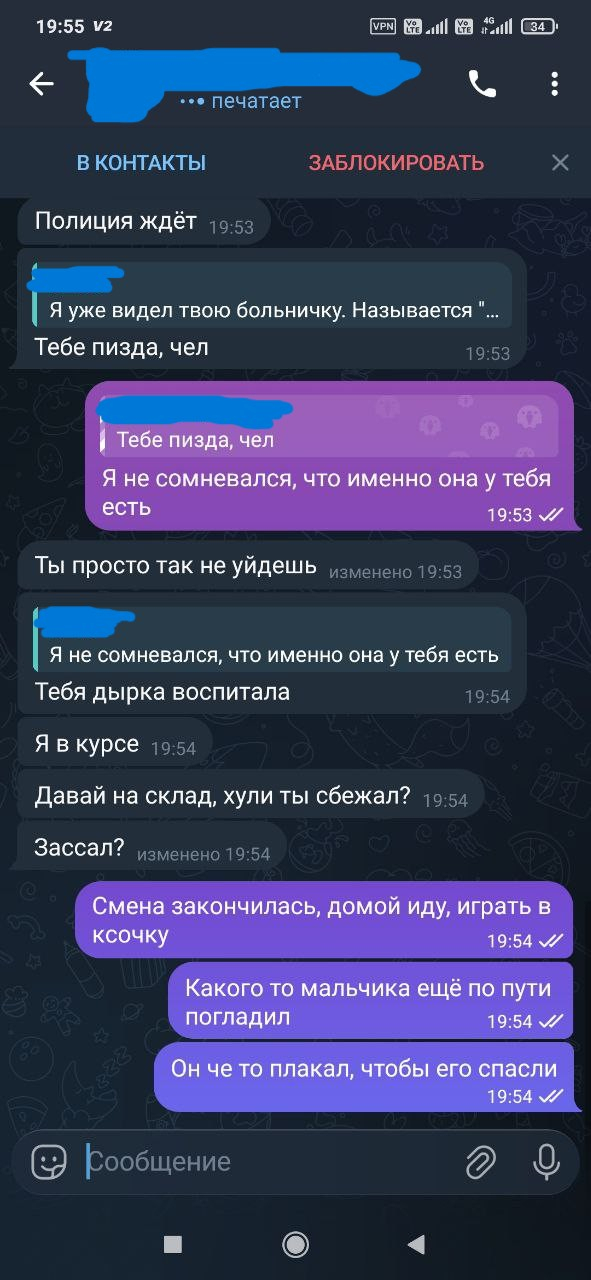 Неделю назад оставлял здесь тред о том, как разбил еб*ло в курьерском центре одному коллеге, который ни за что ударил меня в грудь. После этого меня перевели в другой центр и буквально вчера произошла аналогичная история, только курьер уже решил меня оскорбить.