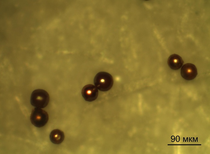 Недавно опубликовали мою с соавторами статью в журнале "Письма в журнал технической физики" (Письма в ЖТФ), называется: "Применение метода жидкого анода для получения сферических частиц при плазменном распылении золота, серебра, меди". Ниже фото сферических частиц (золота, серебра, меди) и видео (золото) из этого исследования. Фото и видео получены на оптическом микроскопе.