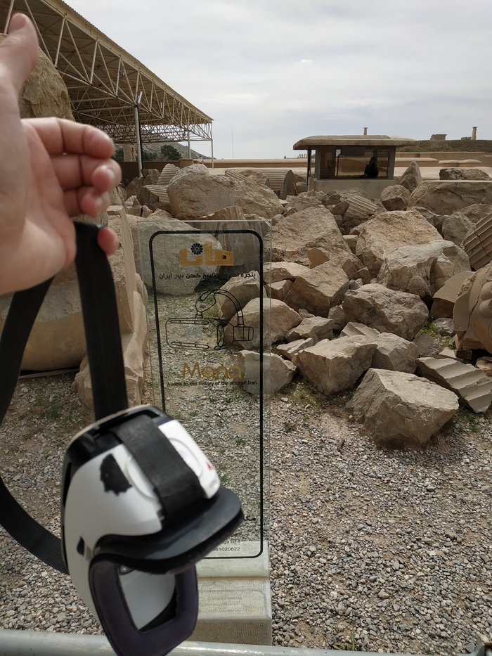Ну, ладно. Перед входом дают в аренду такие штуки - виртуальные очки. Встаёшь на точку и смотришь как все было при Дарии до пьянки Александра