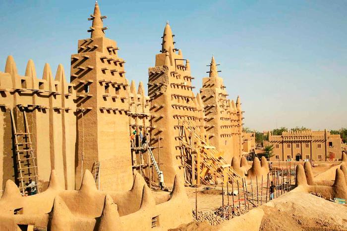 Великая мечеть Дженне - самое большое глинисто-наносное здание в мире. Мечеть в 1988 году включена в список Всемирного наследия ЮНЕСКО
