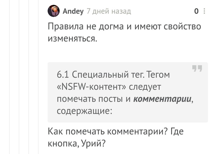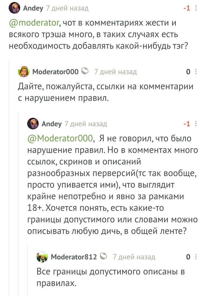 Как и на любой другой работе, где люди хотят делать работу хорошо, не бывает абсолютного согласия во всех вопросах, как внутри отдела, так и за его пределами. С учетом того, что у всех в команде Пикабу равные права на высказывание своего мнения, это часто приводит к спорам и горячим обсуждениям. Отделу модерации нередко приходится искать компромиссы между потребностями пользователей и потребностями ресурса. А компромисс, как известно - это когда недовольны все.