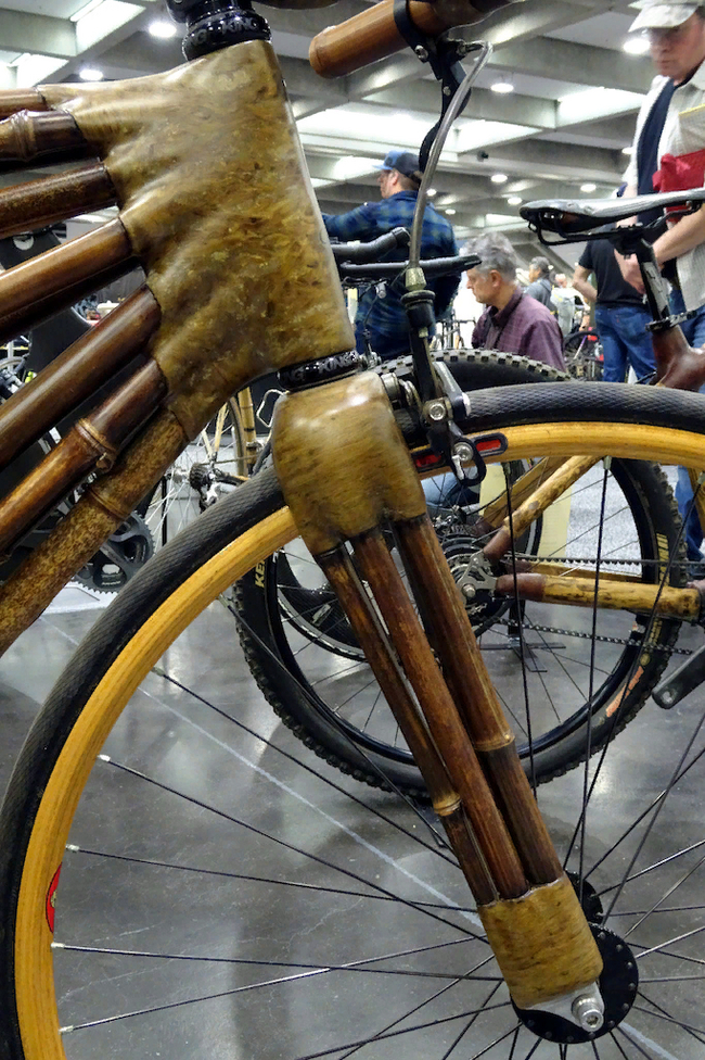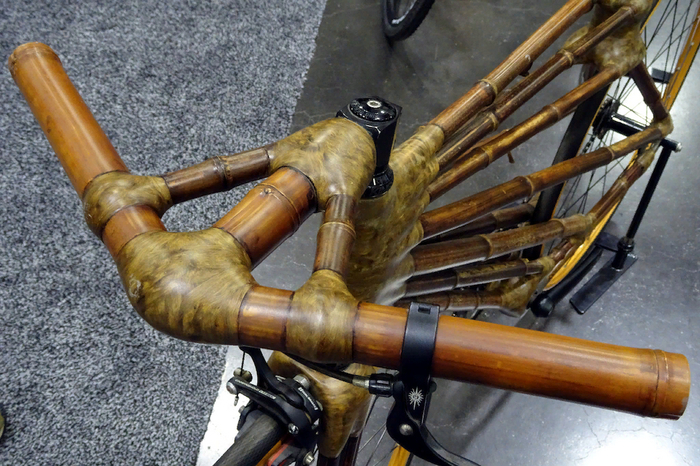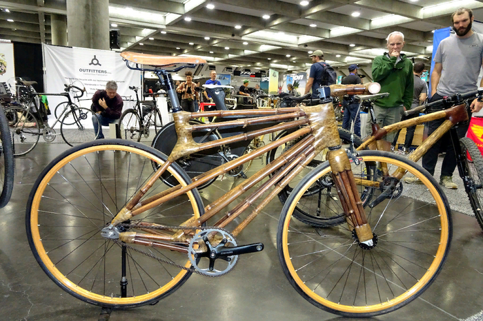 Крейг Калфи, мастер по производству бамбуковых велосипедных рам, в этой выставке был удостоен награды NAHBS, были представлены многие из его творений , в том числе этот, мать всех бамбуковых велосипедов.