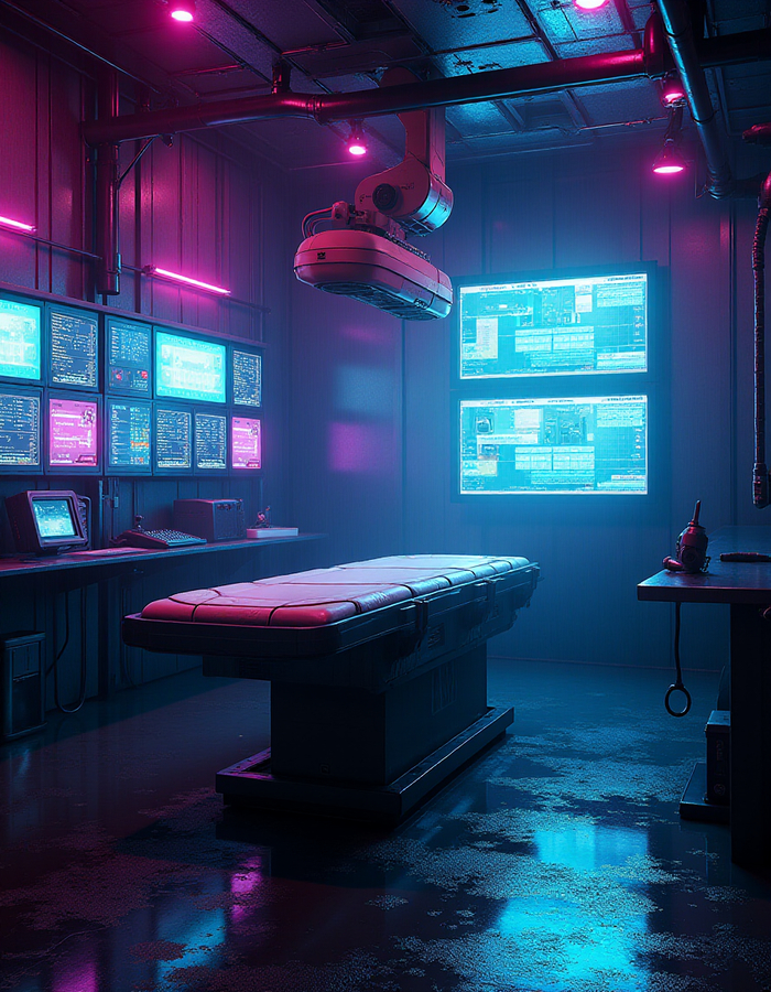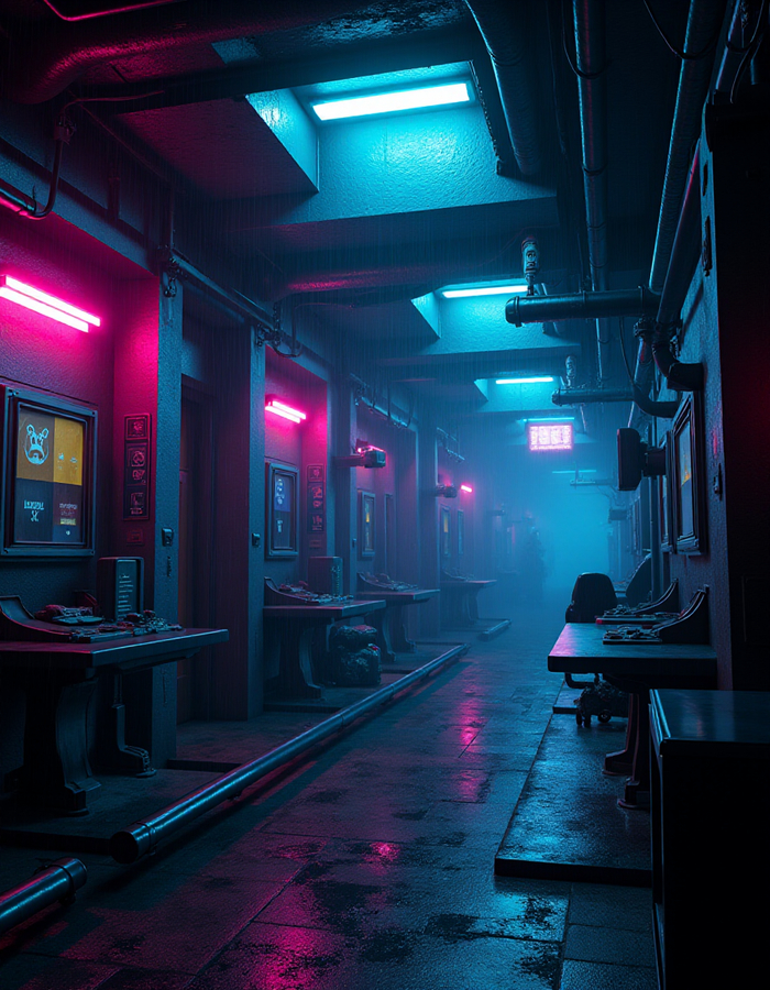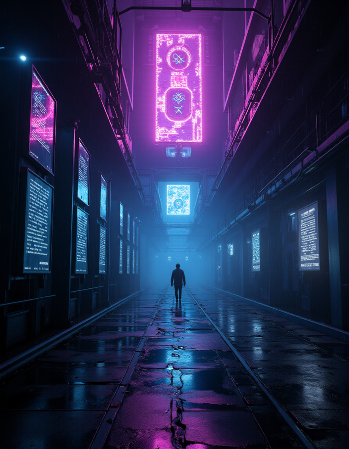И с одной стороны, вот это всё мрачие, киберпанк с фиолетовым неоном вроде уже откликнулись. Но было ощущение что, что-то не то.