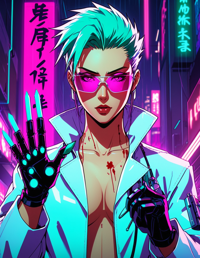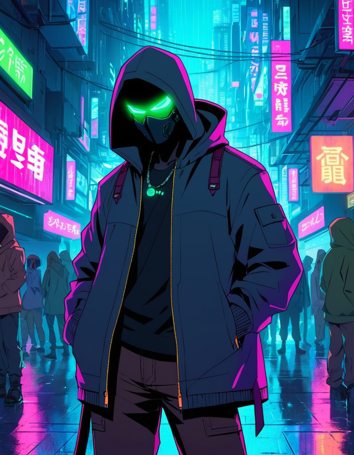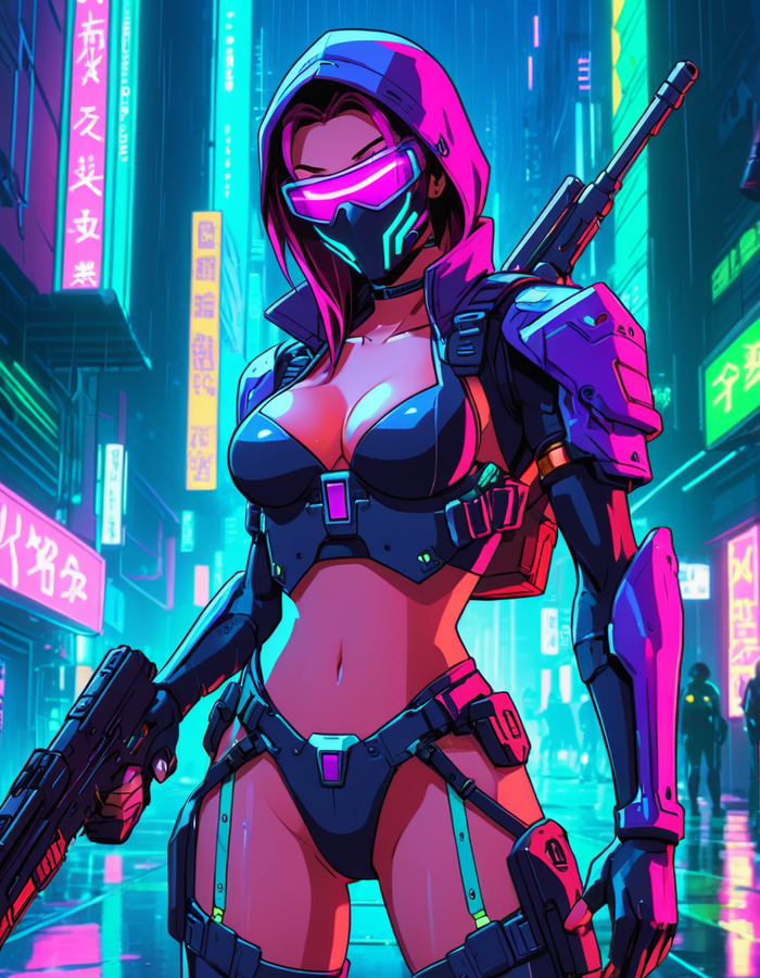 И вроде вау, круто, реалистично, цель достигнута. Однако вот ощущение что это нейросеть прям кричало через экран. А потому вернувшись к джагернауту, был проведен эксперимент с иным стилем. "Киберпанк хорошо дружит с аниме" подумал я, и решил, а действительно. Так и нейросетевые картинки не будут сильно глаз резать.