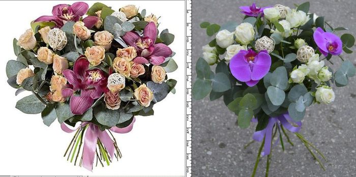 Это называется - орхидея похожего оттенка. По поводу "густоты" букета мне сказали что роза кустовая и количество бутонов они не отслеживают. Могут со всеми скрипами вернуть мне аж 25% под великую ответственность. В общем и целом мне вернули окола 800 руб., Я просил вернуть разницу между вариантом букета этого "попроще" за 1990 руб, имхо мне кажется что этот букет больше на него похож.