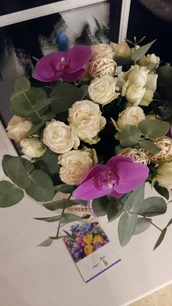 При оформлении заказа запросил фото при доставке. Заранее не звонил, как кто не сложилось. И в день рождения тоже решил не звонить - типа "забыл". Хотел чтобы букет оказался полнейшим сюрпризом. Звонок из магазина - так пол и так - у нас нет орхидей такого цвета, если оставлять орхидеи - то будет другой цвет или мы можем заменить орхидеи на фаленопсис того же примерно цвета. (та же орхидея внешне но сорт другой). Я согласился на замену цветка при условии что цвет будет примерно такойже. Потом они добавили что кремовых роз тоже нет в наличии - можем заменить их белыми. Ну как я подумал, в принципе белые розы и орхидеи такого цвета будут сочетаться норм. Согласился. (Они разговоры все записывают у себя). Смеркалось. Звонка обратного от именинницы нет, букет не доставлен. Звоню в магазин на горячую линию - там мне отвечают что получатель вне города - они созванивались с ним, букет передадим родственникам. Ну ок, бывает, что поделать, лоханулся. Позвонил имениннице, поздравил, она сказала что фотку пришлют букета ей и будет радоваться фотке. Статус заказа изменен - на "доставлен". Фотографии при доставке нет. Ну ок - там написано в течении трех дней ее отправят на почту. Ждем. Три дня проходит фотографии нет. Тут родственники прислали наконец фотографию букета имениннице, а она мне.