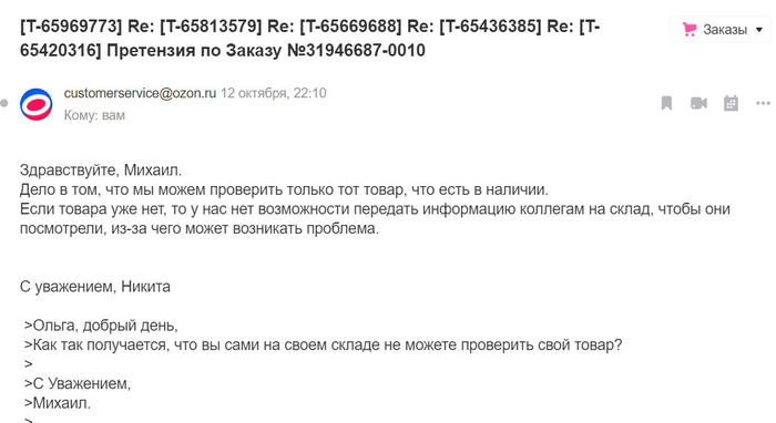 В общем, не понравилась мне эта ситуация, почитал ЗОЗППы, форумы по аналогичным ситуациями и решил написать претензию Озону, суть которой - Вы че там поехавшие что-ли, как я перезаказывать должен? Привозите товар согласно договору купли-продажи или возместите разницу за покупку на вашем же сайте у ваших половых партнеров.