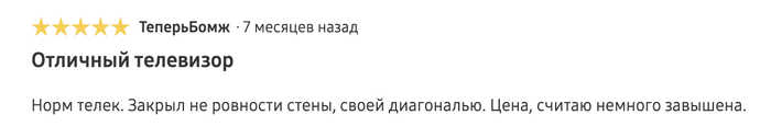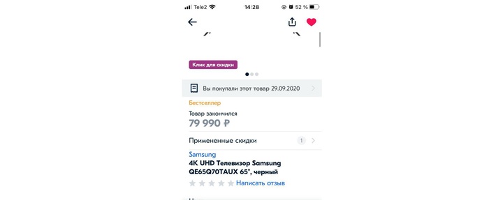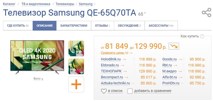 Решил на памятную дату порадовать себя большим телевизером, чтобы скучными, томными вечерами погружаться в высококачественный ультра 4к 120фпс гейминг (потом когда-нибудь надо будет еще видеокарту под это дело прикупить). Несколько недель листал форумы, обзоры, рейтингсы, изучил информации больше, чем за 5 лет учебы в универе, и в итоге наметил пару моделей, которые может позволить мой девальвирующий бюджет. Старожилы форумов рекомендовали мониторить крупные торговые площадки, там нередко выкладывают телики с хорошими скидками, белые по цене серых. У телевизоров, кстати, разброс цен космический, например тот, что наметил - у серых цена в районе 85к, у белых в сомнительных магазинах 88-93к, а у группы АКИТа (ахеревший картель интернет торговли) по 129 990 (но бывают аттракционы невиданной щедрости и делают скидки аж до 117к).