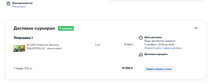 И тут, нежданно-негаданно, в 8 утра на складе Озона опять появляется эта модель, да еще и по такой же цене как и раньше - 79 990. Ну слава яйцам, не зря ждал - Кошелек, карта, проверка всех наименований, оплата, на все ушло меньше минуты.