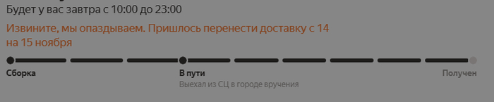 “Товар задерживается. Доставка перенесена на 15 ноября.”