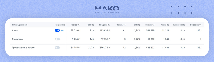 Общий ДРР всех кампаний буста продаж составил 11,2%. За 2 месяца получили 76 заказов.