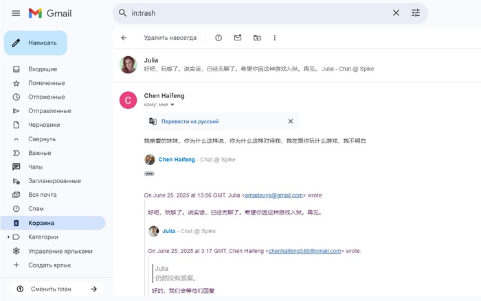 Написала врачу, что игра закончилась, стало скучно, до свиданья. И пожелала ему тюрьмы! Удалила письма, фото, и заблокировала в Weibo.