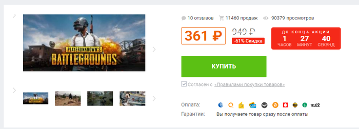 Хотел я купить Pubg. Естественно, ключ, потому что так дешевле. Конечно, хотел сэкономить. Обычно покупаю на ggsell, но там хоть и была цена в 300р по акции, по факту при оплате просило 600: