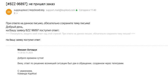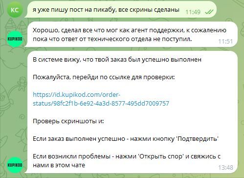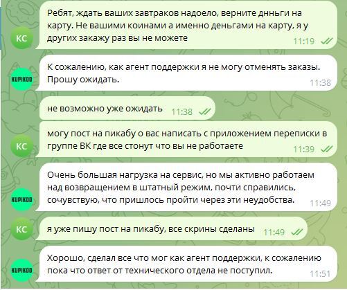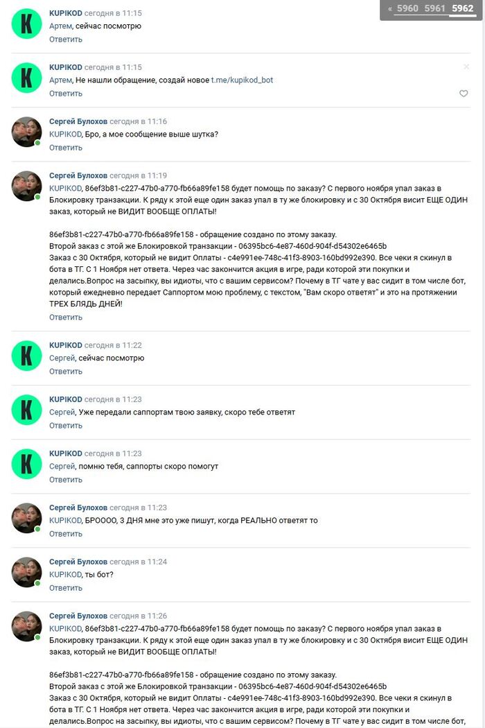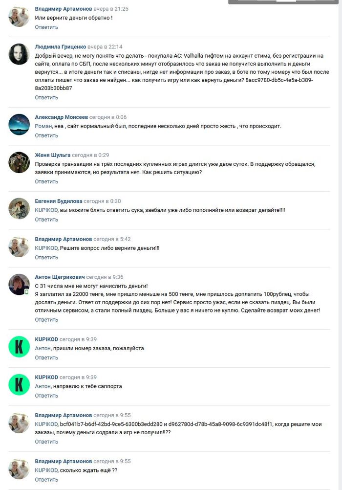 Вот такие дела ребята, надеюсь что этот пост люди увидят раньше чем совершат им оплату и не попадут в такую же ситуацию как я. А пока - КУПИКОД ВЕРНИТЕ ДЕНЬГИ!!!