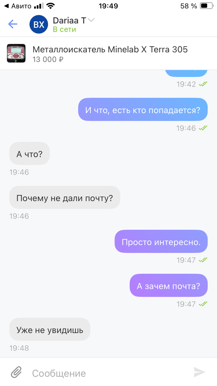 Решил тут свой старый металлоискатель продать. После публикации через 10секунд написало это.