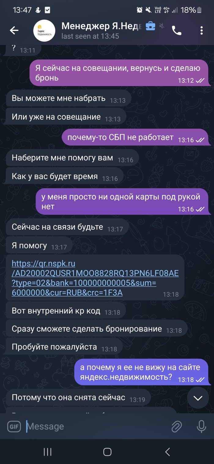 Вам предлагают перейти в телеграм, объясняя это тем, что якобы не грузятся картинки объявления, просят прислать фото в лс и оставляют ник.