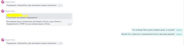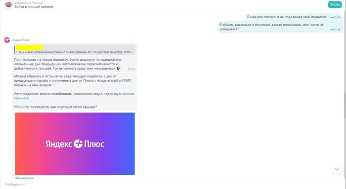 Но ответ ничего нового не привнес в контексте положительного разрешения ситуации - меня уверяют, будто я подключил новую подписку, с помесячной оплатой еще до окончания ранее оплаченной годовой. Ну да, логично, ведь каждый из нас наверное так делает - мы ведь все миллионеру тут. И самое интересное, предоставили то, что они сочли ответом и покинули чат. Вот прям чувствуется забота о клиентах и желание разобраться в вопросе.