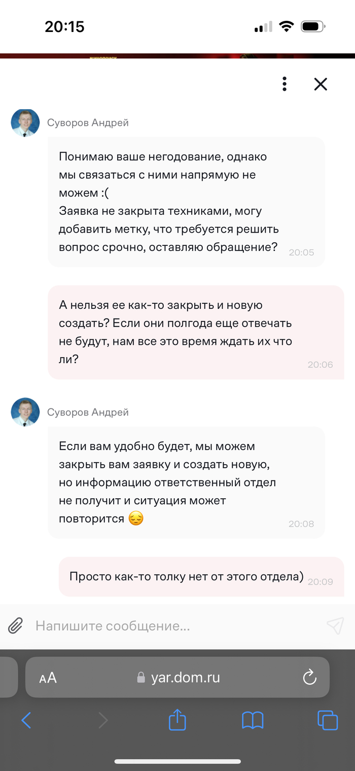 На вопрос, можно ли создать новую заявку, мне ответили, что в таком случае жалоба на мастера будет просто закрыта и ничего никуда не дойдет (как будто сейчас что-то куда-то идет).