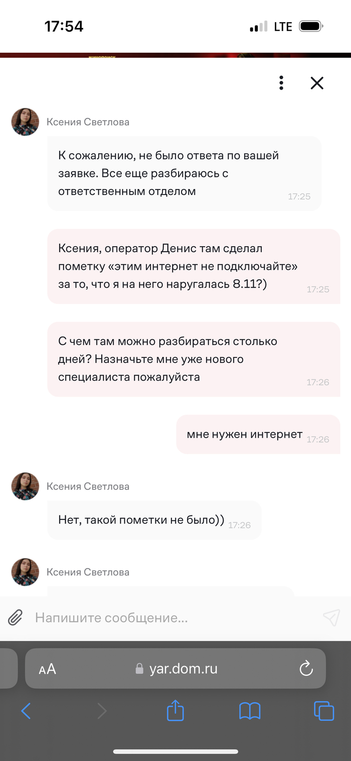 Мы оставили жалобу на специалиста (куда-то она вообще идет?) и нам обещали, что нам перезвонит какой-то отдел жалоб в течение часа, чтобы определить новое время для подключения, в которое мастер точно придет.