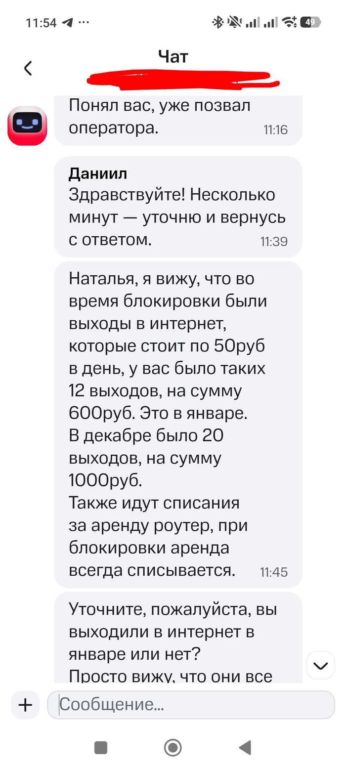 Оператор в диалоге подтверждает, что от меня действительно хотят вернуть оборудование. Не “возможно”, не “вероятно”, не “давайте уточним”. А именно: “Да, верните, по нашим данным оно у вас”.