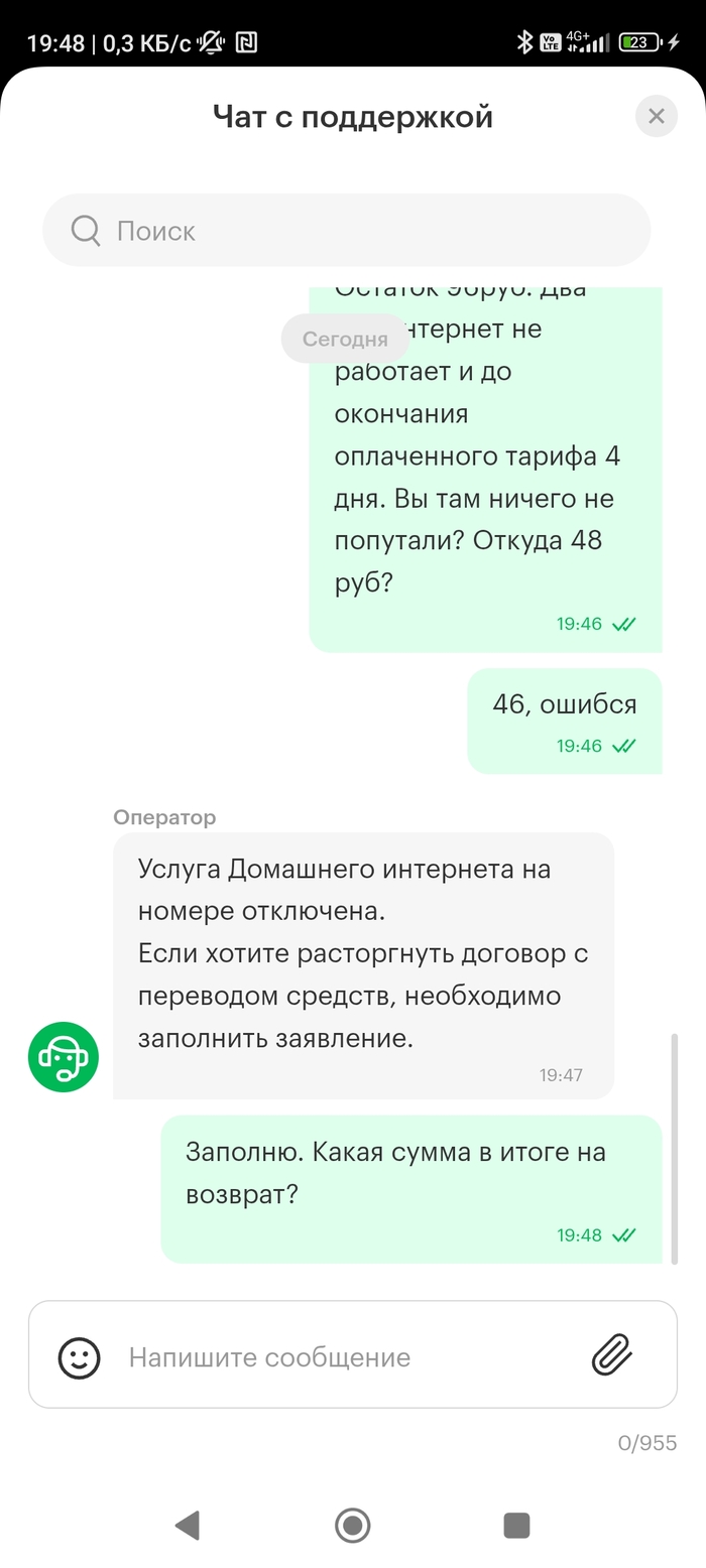 "Возврат оборудования через него возможен, надо создавать заявку позвонив по телефону техподдержки. Сегодня несколько роутеров по заявкам на возврат забирал у клиентов. Звоните, оформляйте - приеду, сегодня она мне в работу не упадёт." После чего мы попрощались и он ушёл.