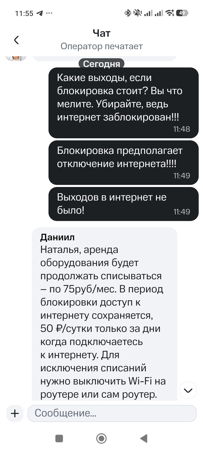 Вопрос в поддержку - услуги нет, деньги снимаете. Ответ убил: платный выход по приостановленной (отключённой) услуге.