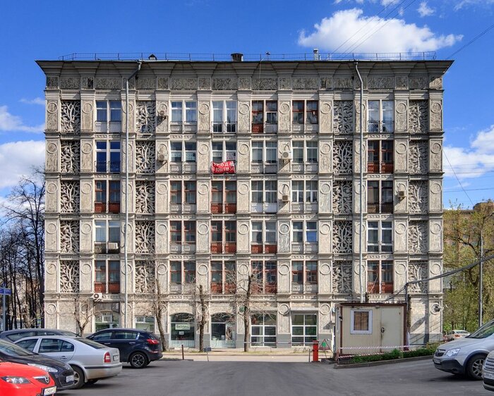 Другой проблемой была демонстративность сталинской архитектуры. Монументальные здания должны были показывать имперскую мощь Советского Союза и стать витриной социализма. Важный документ той эпохи — постановление 1934-го года. В нём, среди прочего, были зафиксированы трёхметровые потолки — за что сталинки любят до сих пор. Советская архитектура всё больше берёт курс на стандартизацию и типизацию домов. В 1940 году в Москве появляется Ажурный дом. На будущие хрущёвки он похож тем, что строится из крупных блоков. И всё же внешний вид отсылает пока что к ар-деко. Ажурный дом близок к тому, чтобы стать типовым, но в архитектурные планы вмешивается война.