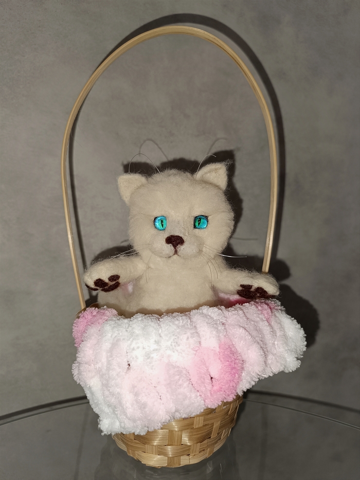 Кошечка «Маришка» – интерьерная игрушка, выполненная в технике сухого валяния из шерсти. Игрушка имеет приятную на ощупь текстуру, а ее мордочка и лапки выполнены с особой тщательностью.