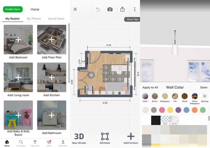 Если бы мне нужен был максимально мощный, но все еще мобильный инструмент, я бы выбрала его. Это уже почти серьезная программа для дизайна интерьера для телефона.