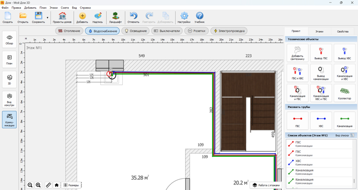 Рисование стен, перегородок с автоматическим расчетом площади.