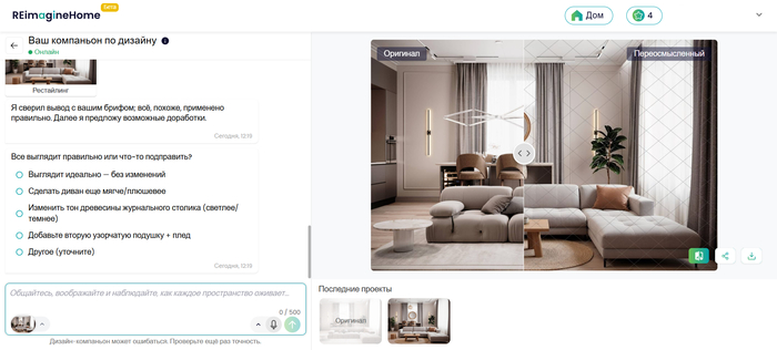 Я, конечно, фанат всего бесплатного (на стройке каждая копейка на счету!), поэтому особое внимание уделяла бесплатным онлайн-нейросетям для дизайна интерьера.
