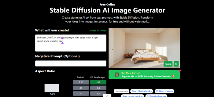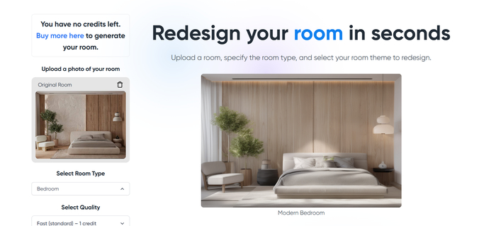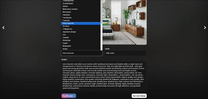 Простая и бесплатная нейросеть для создания дизайна интерьера. По сути он берет вашу фотографию и заменяет отделку, мебель или декор, сохраняя при этом геометрию помещения. Очень помогает, когда вы сомневаетесь в цвете краски или фактуре обоев, его я использовала часто.