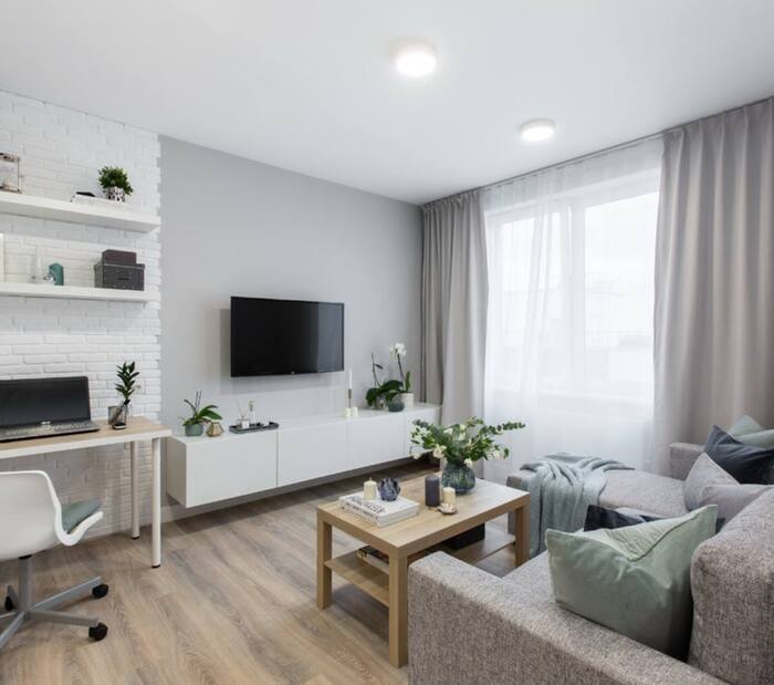 Ремонт квартиры в ЖК «Bakunina 33» в Санкт-Петербурге стал точной реализацией запроса на «чистый» интерьер без визуального мусора. Все решения выверены, каждая зона логична, каждый материал подобран под реальное использование.