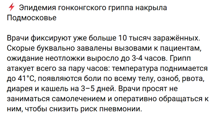«Эпидемия гонконгского гриппа» — в соцсетях пугают новой опасной инфекцией, которая массово накрыла Подмосковье. Это не так.