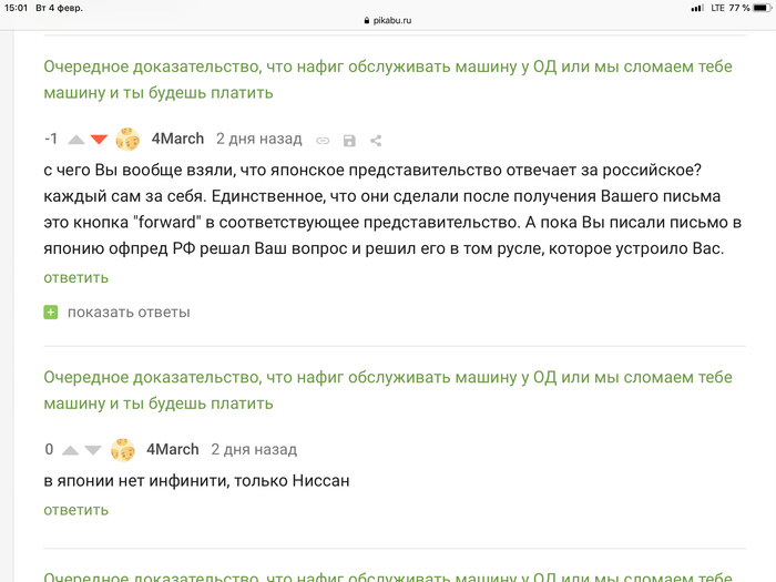Так же в комментариях увидел одного интересного человека, я пока писал на все возможные эл почты в Инфинити и Ниссан в одном письме я дал ссылку на предыдущий пост и там почти сразу появились 2 комментария