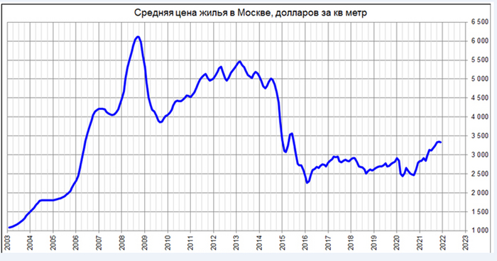 За последние 18 лет она достигла 60 процентов, а это значит, что квартиры в Москве сейчас стоят 1600 долларов в ценах 2006 года.