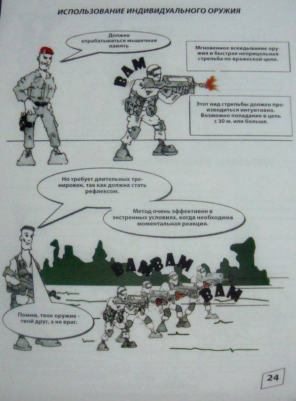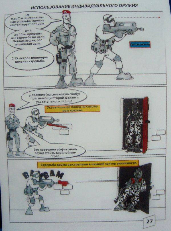 Ниже показана инструкция "Правила ведения боя в городе" в виде ... комикса. Интересно, смешно и, в принципе, доходчиво. К тому же размер инструкции 10х15 см - формат блокнота - и ее можно носить при необходимости с собой в кармане.