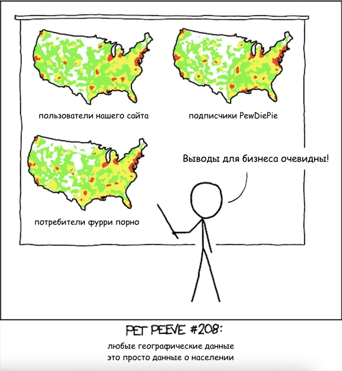 Даже показав полные данные, всё ещё некорректно делать далеко идущие выводы. Причину отлично иллюстрирует этот комикс от XKCD: