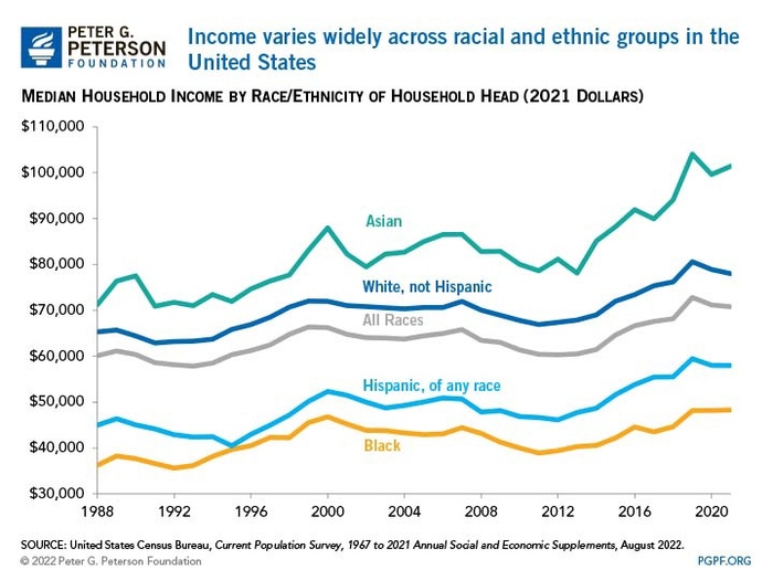 А теперь посмотрим на медианный доход населения США по расам. Угадайте, у людей с каким цветом кожи он наименьший?