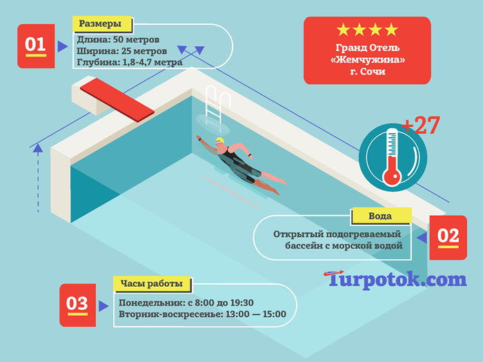 Инфографика "Отели Сочи с морской водой в бассейне"