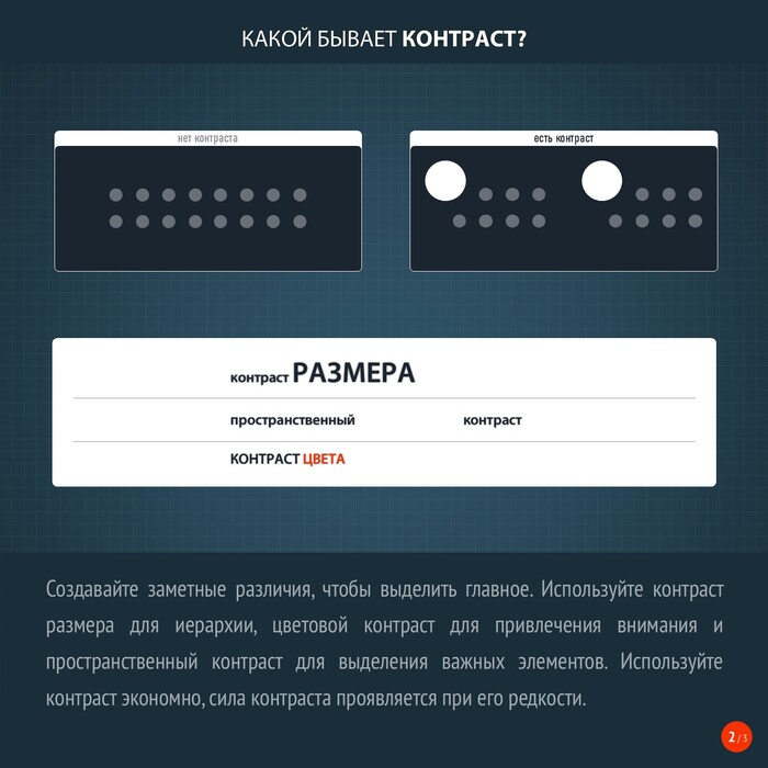 • цвет (контраст для выделения),
