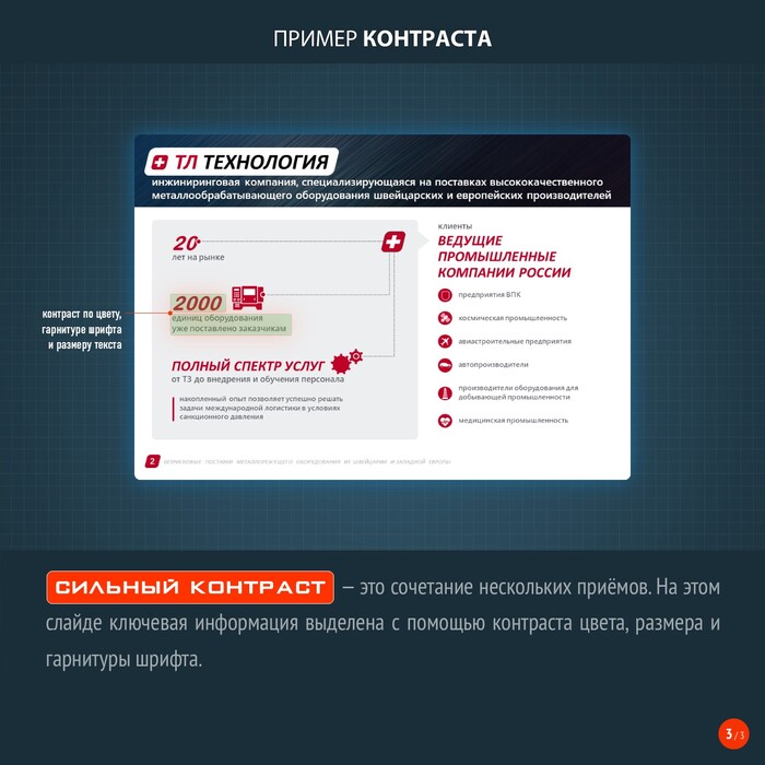 Ранее упомянутая диаграмма связей служит основой для инфографической схемы. Соответственно, решение композиционной задачи сводится к гармоничному расположению всех элементов схемы и связей между ними в пространстве, назначенном для размещения инфографики. Например, на слайде презентации.