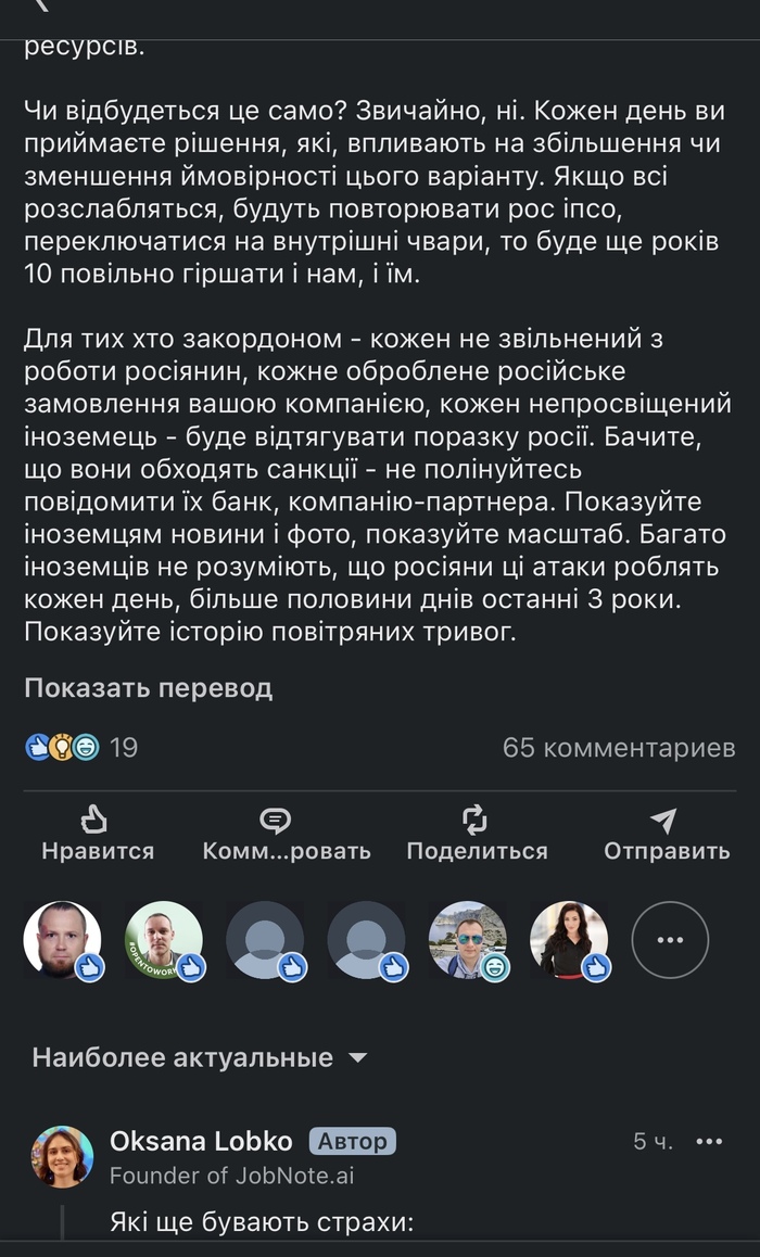 Для тех кто за границей — каждый неуволенный с работы россиянин, каждый обработанный российский заказ вашей компанией, каждый неосведомлённый иностранец — будет оттягивать поражение россии.