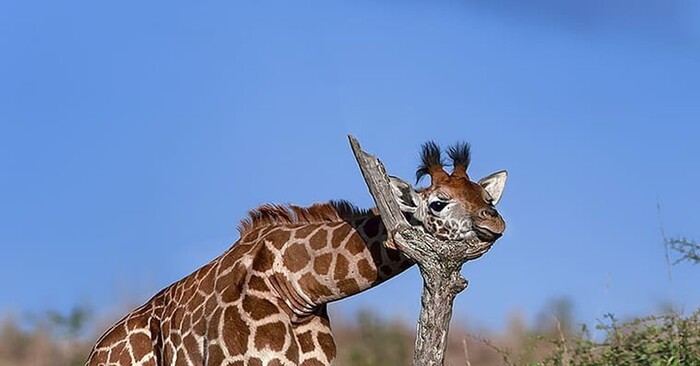 Хотя на первый взгляд представители жирафовых непохожи, они имеют ряд общих признаков. Окапи имеет форму тела, похожую на форму тела жирафа, но гораздо более короткую шею. Как и жираф, окапи – миролюбивое травоядное животное с очень длинным синим языком, который может достать до глаз, ушей и ноздрей зверя.